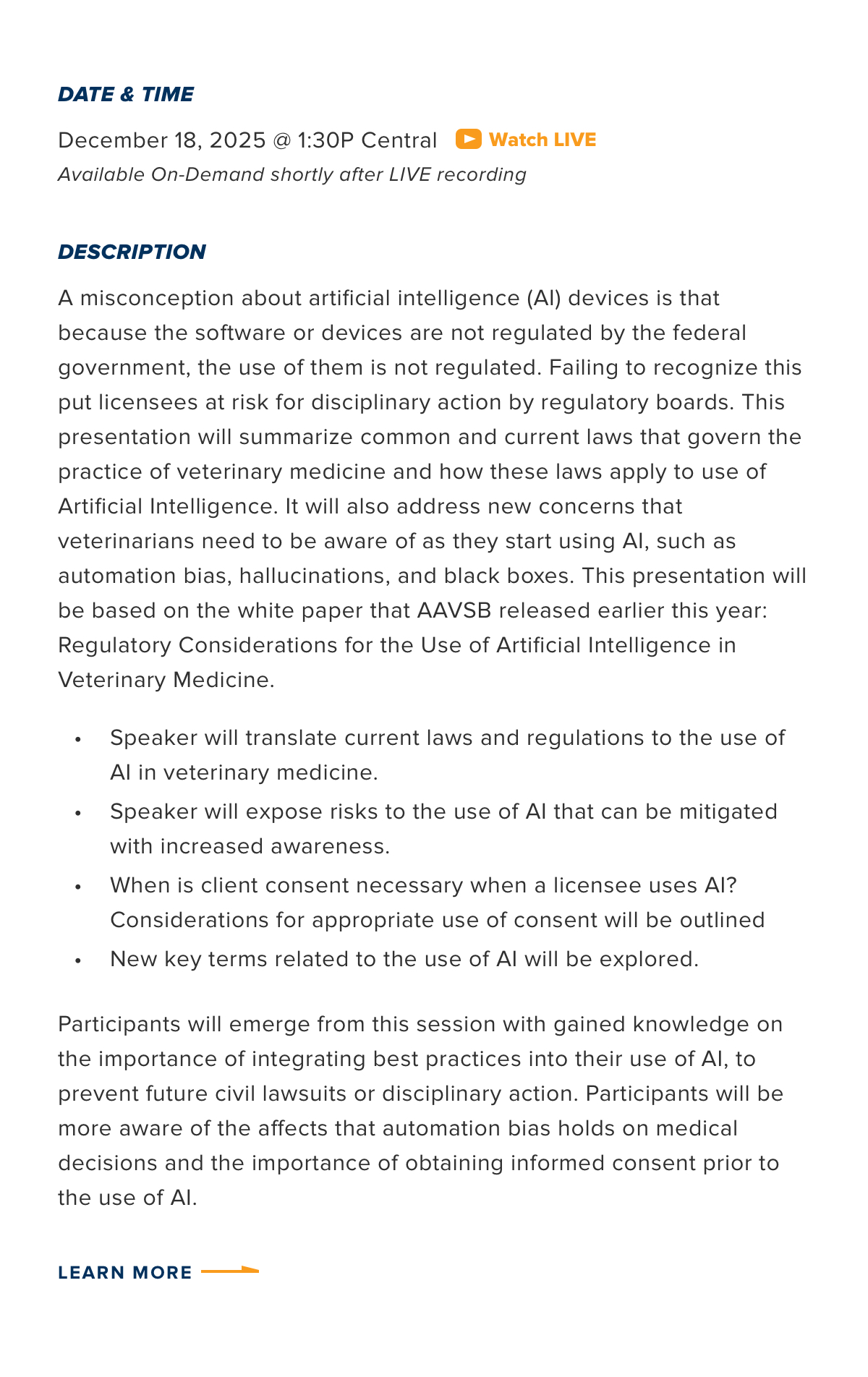 Regulatory Considerations of the Use of Artificial Intelligence in Veterinary Medicine