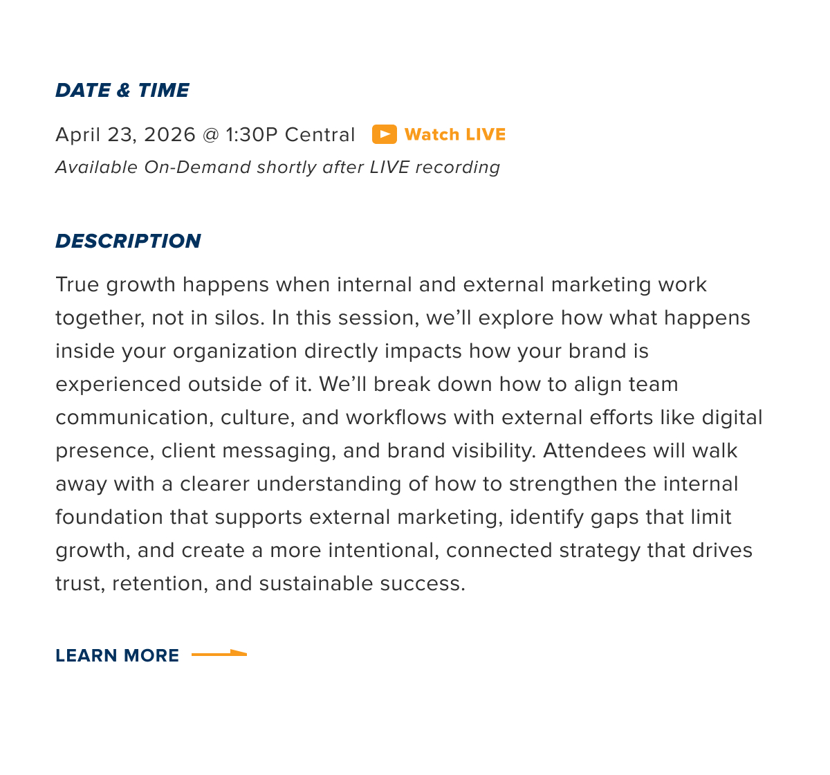 You get the idea – top speakers, great insights, and valuable expertise free to your members. The live webinar will be offered once and then be available for on-demand access by your members.