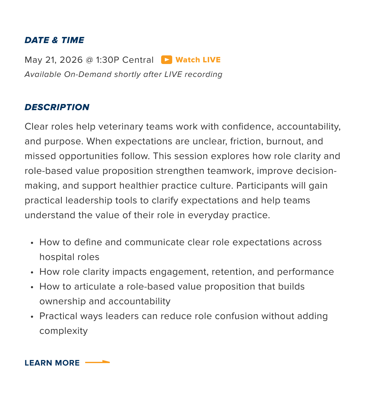 The header graphic will remain a consistent feature in the marketing materials available to you for promoting the webinars to your VMA members. For your social media channels, we’ll provide ready-to-use digital assets that can be easily incorporated into your feed, all branded under your VMA. The assets position your VMA as the provider of high-quality content that is complimentary to your members.